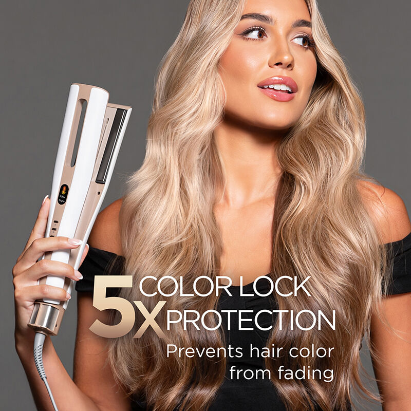 CHI LAVA AirGlide Pearl je inovativní stylingový nástroj, který v sobě spojuje vysoušeč, žehličku i kulmu. Díky technologii vulkanických desek zajišťuje rychlé, šetrné a maximálně efektivní tvarování vlasů. V jednom kroku vlasy vysuší, uhladí nebo vytvoří dlouhotrvající vlny – a to s minimálním poškozením teplem. Ideální volba pro ty, kdo chtějí profesionální výsledek bez zbytečné námahy.