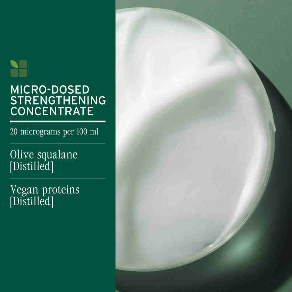 Díky mikrodávkám posilujícího koncentrátu s obsahem olivového skvalanu a veganských proteinů dodává vlasům přesně tolik hydratace a ochrany, kolik potřebují. Vlasy jsou po použití hladší, silnější, pružnější a viditelně zdravější, aniž by byly zatížené.
