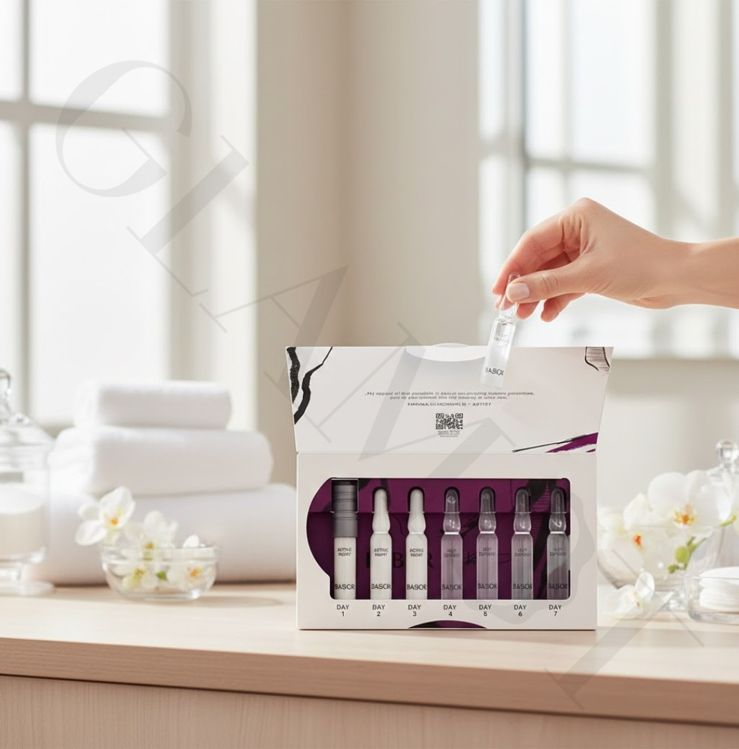 Protřepejte ampulku a omotejte hrdlo ampulky kapesníkem nebo použijte přiložený otvírák na ampulky. Druhou rukou uchopte hrdlo ampule a otevřete ji na spodním barevném kroužku. Nalijte koncentrát do dlaně a rozetřete jej na obličej, krk a dekolt. Koncentrát jemně vklepejte prsty do pokožky a poté na ni naneste běžný hydratační krém. Kúru používejte 7 dní po sobě v pořadí ampulí uvedeném v balení.
