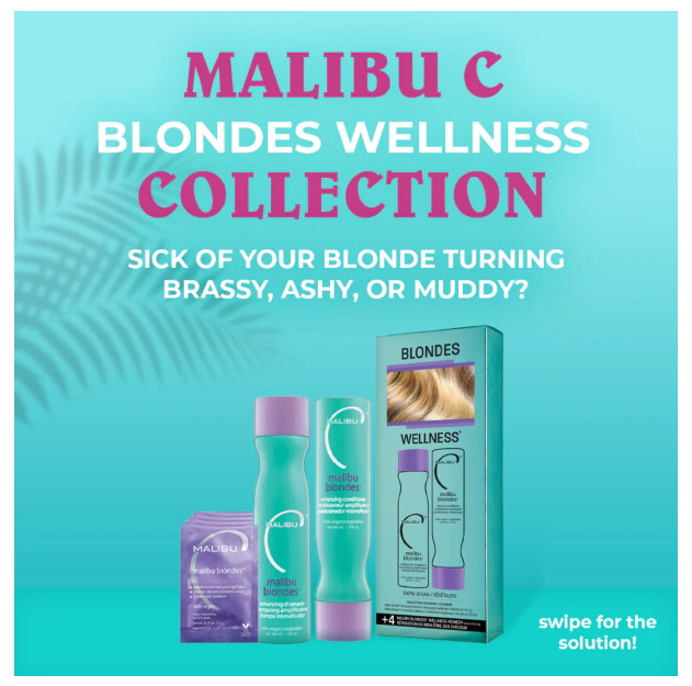 Malibu Blondes® Wellness Collection pomáhá šetrně odstranit minerální nánosy a zabarvení, zároveň dodává hydrataci, pružnost a zářivý lesk – bez vysušení, které je běžné u klasických fialových šamponů.