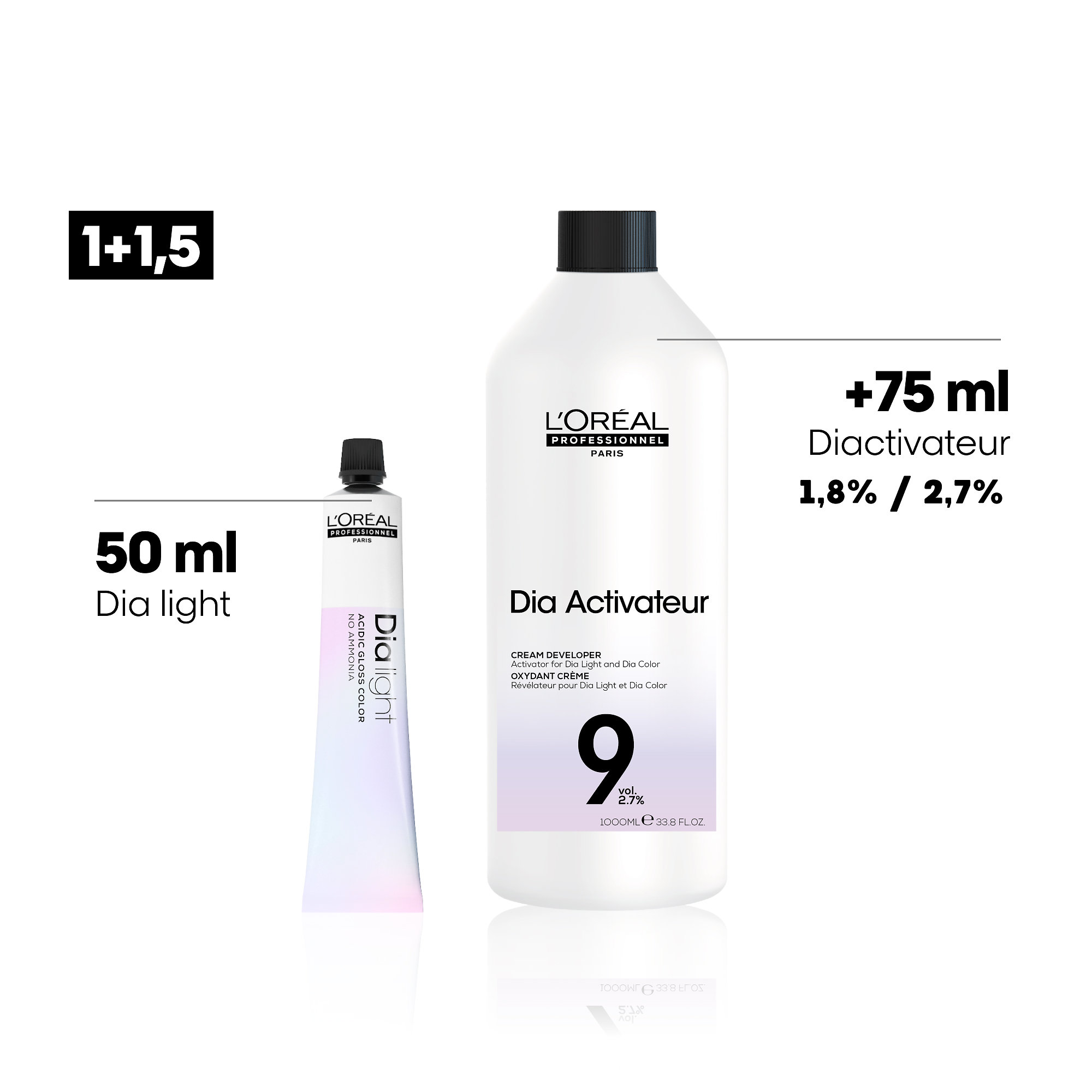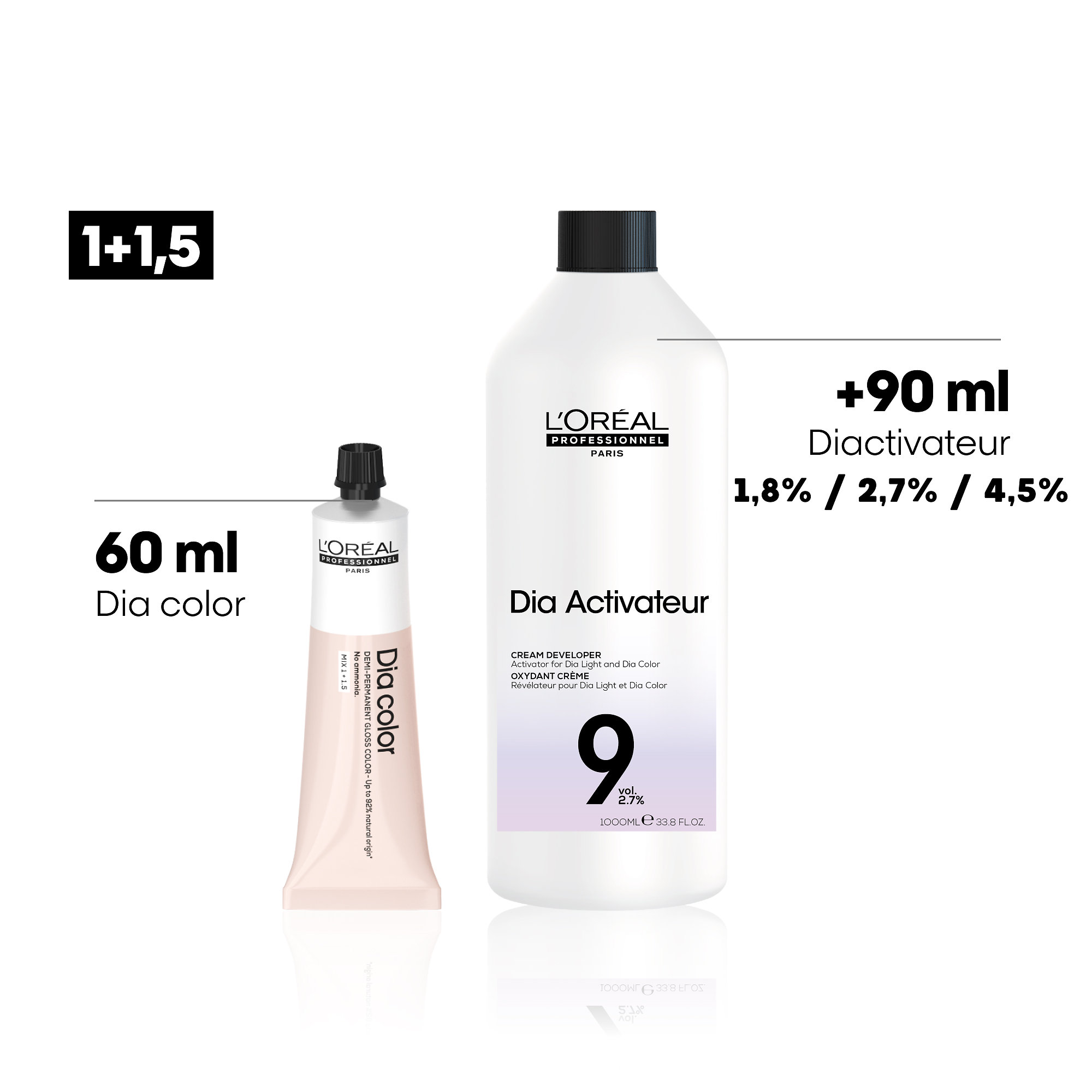 L'Oréal Professionnel Diactivateur je vyvíjecí emulze určená pro profesionální použití, vhodná pro barvy DIAlight, DIAcolor a DIArichesse. Zajišťuje perfektní sjednocený barevný výsledek a je vhodná i pro slabé křehké vlasy.